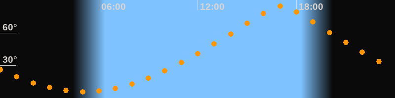 | Höchster Stand (Kulmination) | 17:04 Uhr (h = 84,5°) |