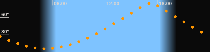 | Höchster Stand (Kulmination) | 17:10 Uhr (h = 84,5°) |