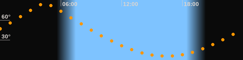 | Höchster Stand (Kulmination) | 04:24 Uhr (h = 84,5°) |