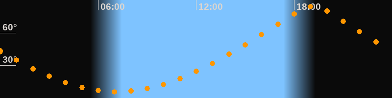 | Höchster Stand (Kulmination) | 19:09 Uhr (h = 84,5°) |