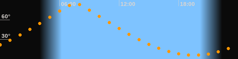 | Höchster Stand (Kulmination) | 07:34 Uhr (h = 84,5°) |
