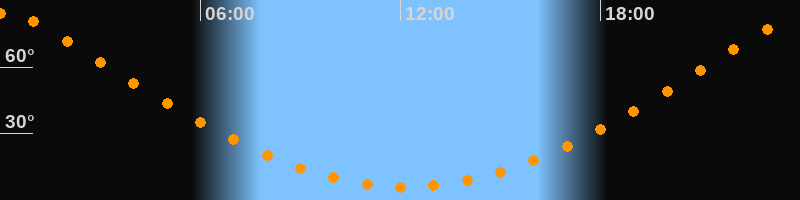 | Höchster Stand (Kulmination) | 00:09 Uhr (h = 84,5°) |