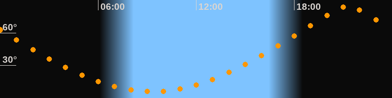 | Höchster Stand (Kulmination) | 21:16 Uhr (h = 84,5°) |