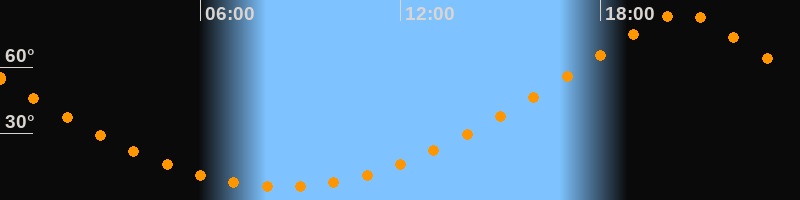 | Höchster Stand (Kulmination) | 20:26 Uhr (h = 84,5°) |