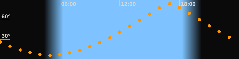 | Höchster Stand (Kulmination) | 17:02 Uhr (h = 84,5°) |