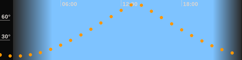 | Höchster Stand (Kulmination) | 13:26 Uhr (h = 84,5°) |