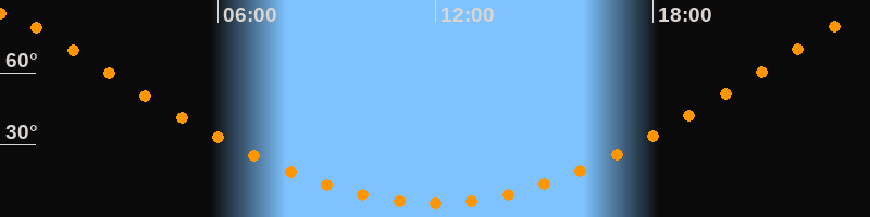 | Höchster Stand (Kulmination) | 23:55 Uhr (h = 84,5°) |