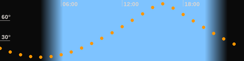 | Höchster Stand (Kulmination) | 15:57 Uhr (h = 84,5°) |