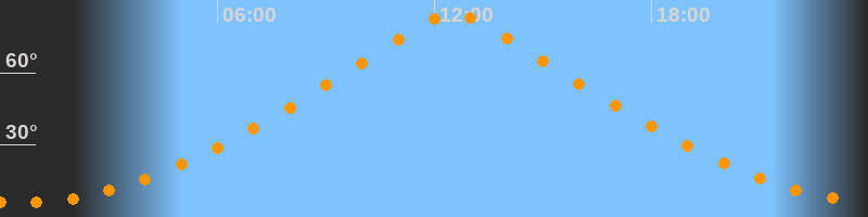 | Höchster Stand (Kulmination) | 12:32 Uhr (h = 84,5°) |