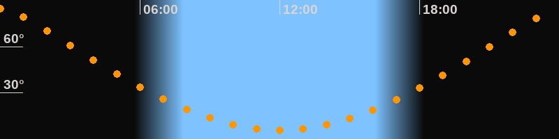 | Höchster Stand (Kulmination) | 00:00 Uhr (h = 84,5°) |