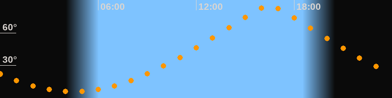 | Höchster Stand (Kulmination) | 16:28 Uhr (h = 84,5°) |