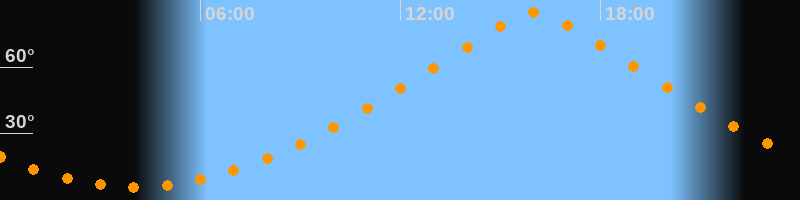 | Höchster Stand (Kulmination) | 16:02 Uhr (h = 84,5°) |