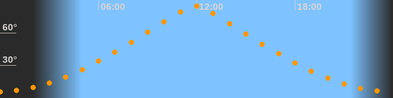 | Höchster Stand (Kulmination) | 11:54 Uhr (h = 84,5°) |