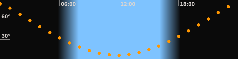 Höchster Stand (Kulmination)23:49 Uhr (h = 84,5°)