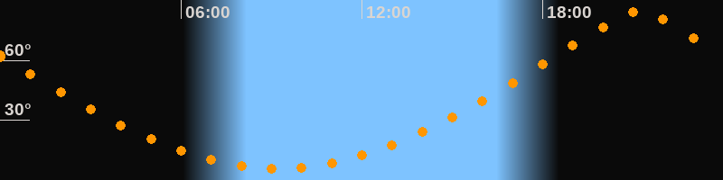 Höchster Stand (Kulmination)21:12 Uhr (h = 84,5°)