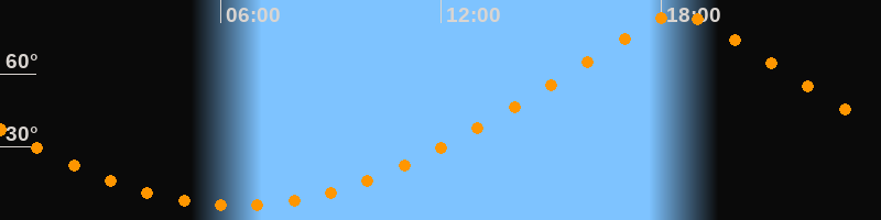 | Höchster Stand (Kulmination) | 18:27 Uhr (h = 84,5°) |