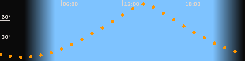 Höchster Stand (Kulmination)14:08 Uhr (h = 84,5°)