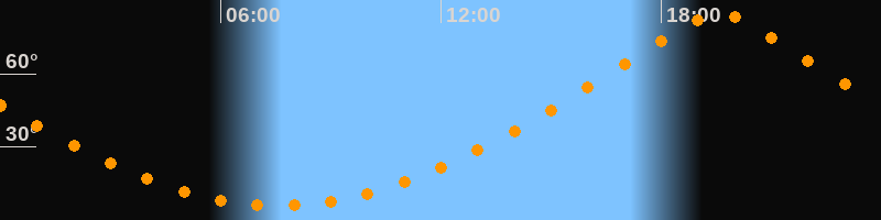 Höchster Stand (Kulmination)19:35 Uhr (h = 84,5°)