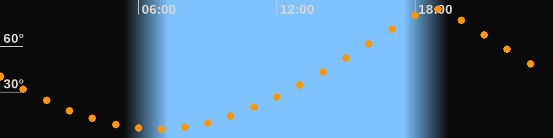 | Höchster Stand (Kulmination) | 18:48 Uhr (h = 84,5°) |