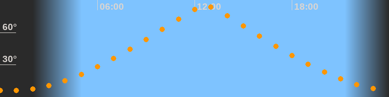 | Höchster Stand (Kulmination) | 12:39 Uhr (h = 84,5°) |