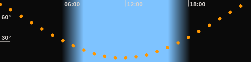 Höchster Stand (Kulmination)23:39 Uhr (h = 84,5°)