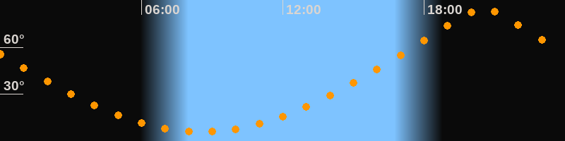 | Höchster Stand (Kulmination) | 20:31 Uhr (h = 84,5°) |