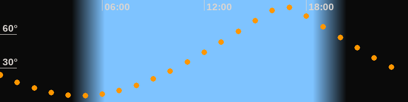 | Höchster Stand (Kulmination) | 16:43 Uhr (h = 84,5°) |