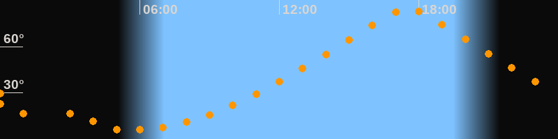 | Höchster Stand (Kulmination) | 17:31 Uhr (h = 84,5°) |