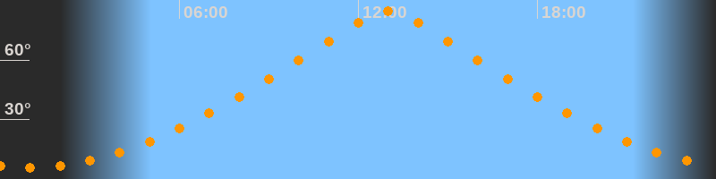 Höchster Stand (Kulmination)13:00 Uhr (h = 84,5°)