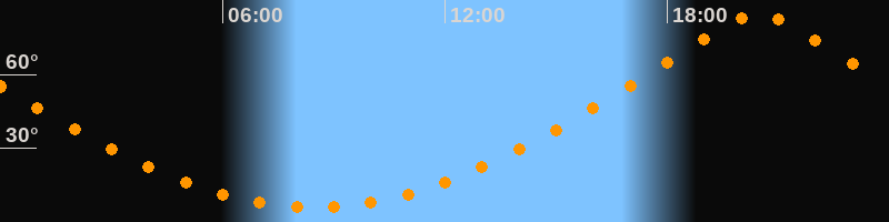 | Höchster Stand (Kulmination) | 20:28 Uhr (h = 84,5°) |