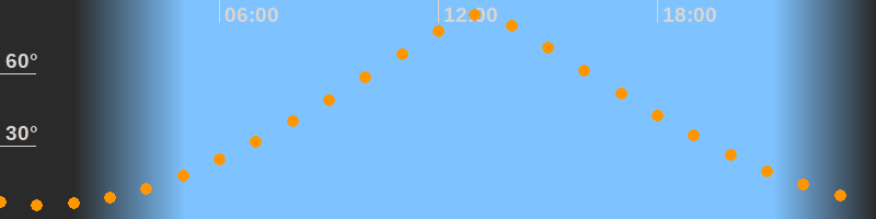 | Höchster Stand (Kulmination) | 13:08 Uhr (h = 84,5°) |