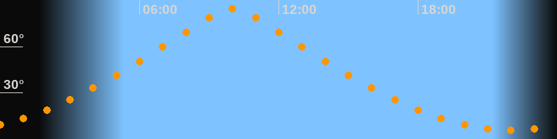 | Höchster Stand (Kulmination) | 10:00 Uhr (h = 84,5°) |