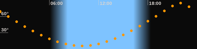 | Höchster Stand (Kulmination) | 21:55 Uhr (h = 84,5°) |