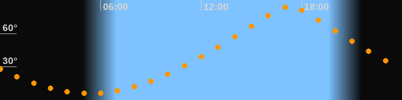 | Höchster Stand (Kulmination) | 17:17 Uhr (h = 84,5°) |