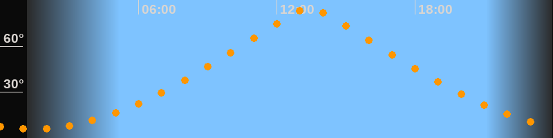 | Höchster Stand (Kulmination) | 13:25 Uhr (h = 84,5°) |