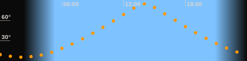 | Höchster Stand (Kulmination) | 14:02 Uhr (h = 84,5°) |