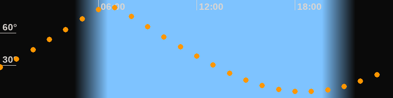 | Höchster Stand (Kulmination) | 06:38 Uhr (h = 84,5°) |