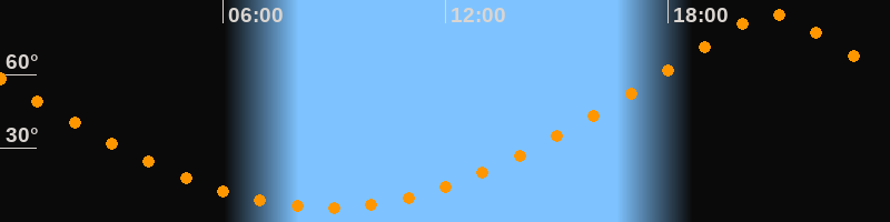 | Höchster Stand (Kulmination) | 20:47 Uhr (h = 84,5°) |
