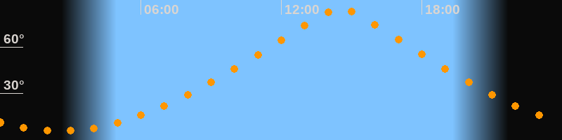 | Höchster Stand (Kulmination) | 14:30 Uhr (h = 84,5°) |