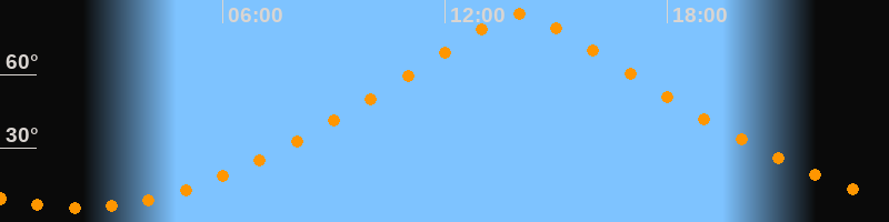 | Höchster Stand (Kulmination) | 14:02 Uhr (h = 84,5°) |