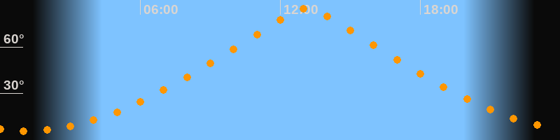 | Höchster Stand (Kulmination) | 13:07 Uhr (h = 84,5°) |
