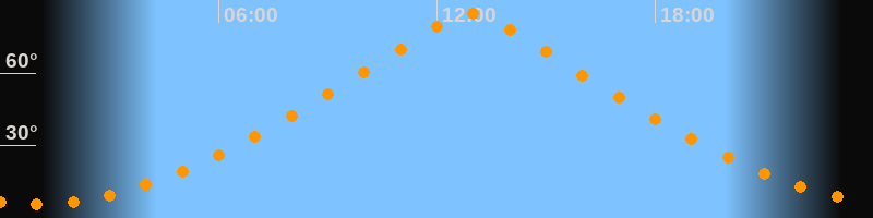 | Höchster Stand (Kulmination) | 12:55 Uhr (h = 84,5°) |
