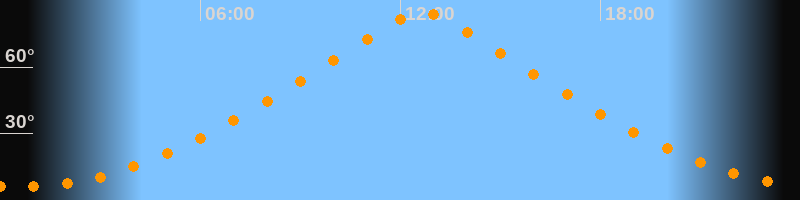 | Höchster Stand (Kulmination) | 12:40 Uhr (h = 84,5°) |