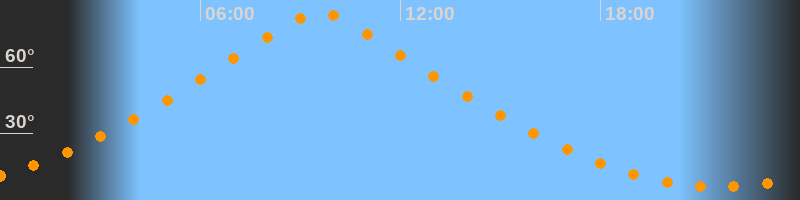 | Höchster Stand (Kulmination) | 09:35 Uhr (h = 84,5°) |