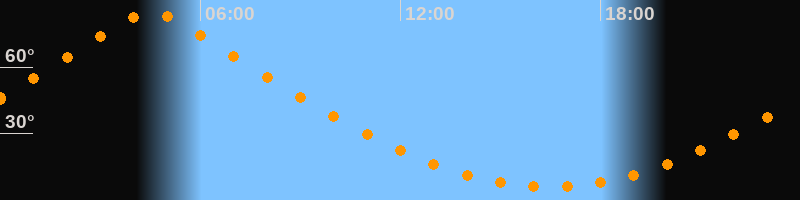 | Höchster Stand (Kulmination) | 04:32 Uhr (h = 84,5°) |