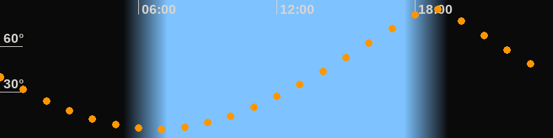 | Höchster Stand (Kulmination) | 18:46 Uhr (h = 84,5°) |