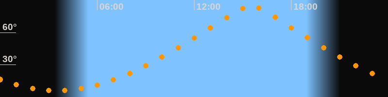 | Höchster Stand (Kulmination) | 15:30 Uhr (h = 84,5°) |