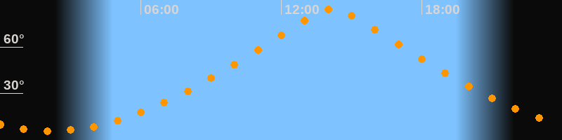 | Höchster Stand (Kulmination) | 14:11 Uhr (h = 84,5°) |