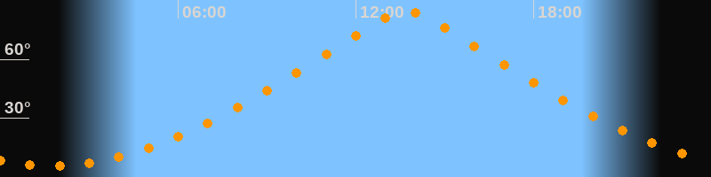 | Höchster Stand (Kulmination) | 13:43 Uhr (h = 84,5°) |