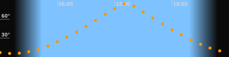 | Höchster Stand (Kulmination) | 13:12 Uhr (h = 84,5°) |